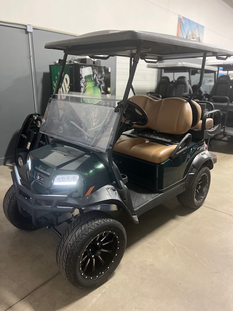 Lithium Ion Power Drive Extended Range Car Color: Metallic Jade Green Seat Color: Premium Camello Canopy Color: Black Clear Hinged Windshield LED Deluxe Light Kit Premium 14″ Wheels Premium Bluetooth Sound Bar Rear Under Seat Storage Bucket Grill Accents HomeLink Garage Door Opener Premium Floormat Rear Cup Holders LED Lighting Fender Flares Brush Guard